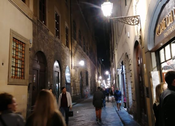 Ulaskom u grad upali smo u popriličnu gužvu, no ipak smo se nekako uspjeli dovući do smještaja – Ville Lucrezie. Na recepciji nas je dočekao jako ljubazan i pristupačan lik koji nam je objasnio sve što smo trebali znati i ono što je bilo najvažnije u tom trenutku – gdje su najbliži dobri restorani. Prvu večer nismo ništa posebno obilazili. Otišli smo na pizzu, bez obzira na negativna iskustva mnogih meni poznatih ljudi koji nisu baš oduševljeni talijanskim pizzama. Ja mogu reći sasvim suprotno. Bila sam prezadovoljna. Završili smo pićem u jednom talijanskom pubu, a izlazak ostavili za sutra.
