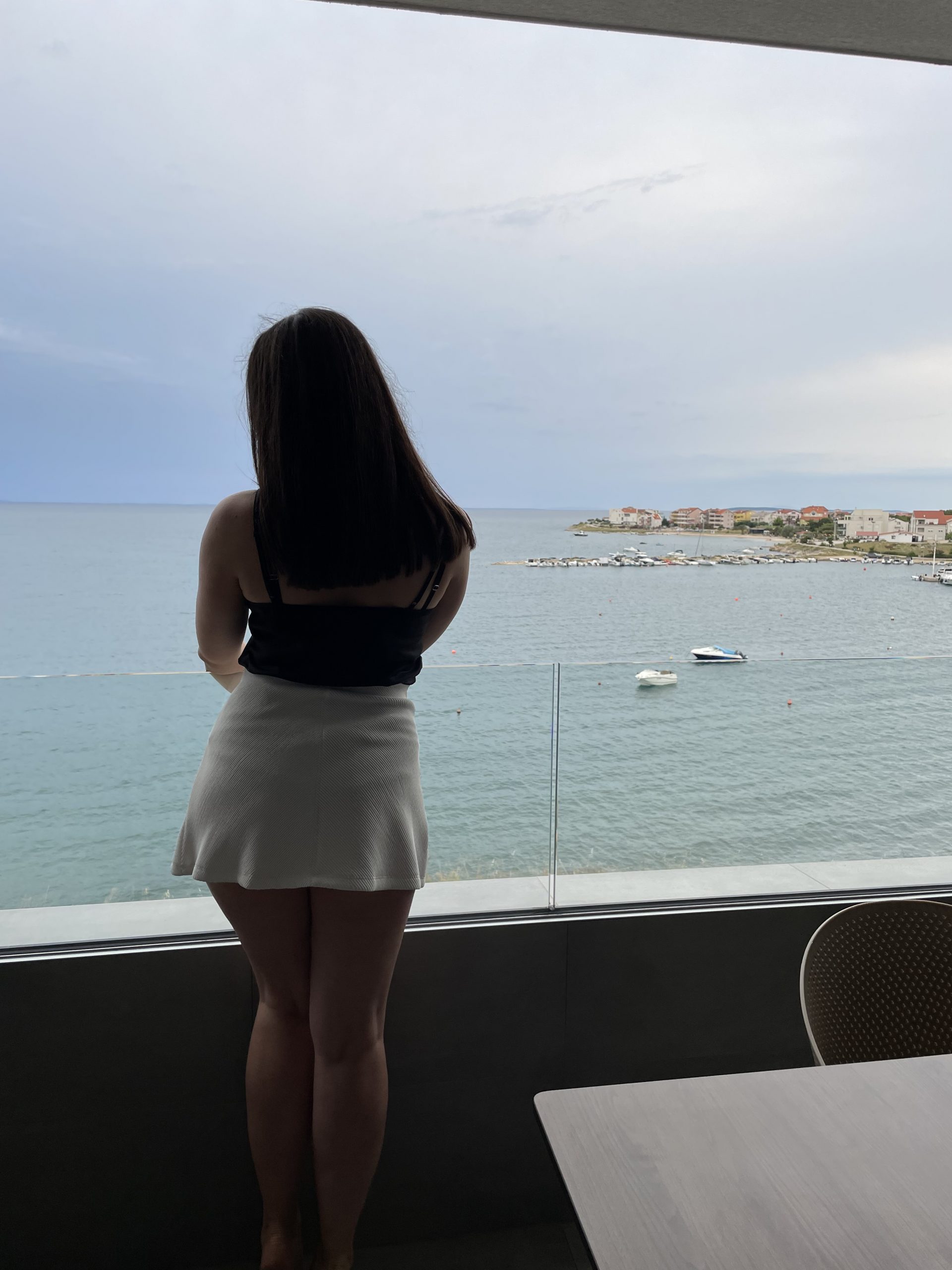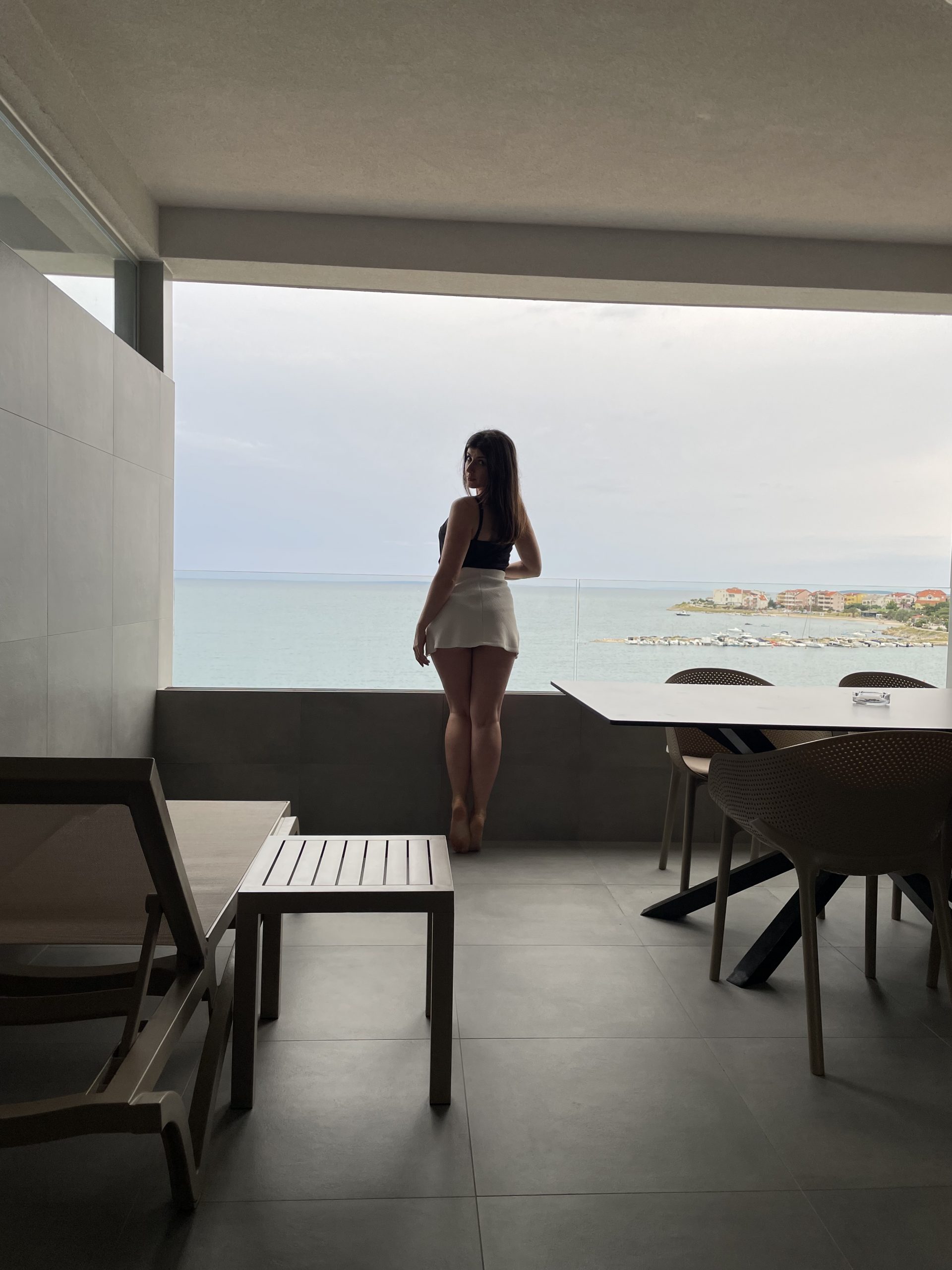 Može li bolje mjesto za dobre fotke od ovoga? Ali ovo je tek prvi dan… Skinula sam sa sebe “radne” hlače i uzela prvo što mi je palo pod ruku. Ova bijela suknjica. Ovo ljeto se opraštam od nje. Kupljena od prve plaće u odvjetničkom uredu. Svašta smo prošle skupa. Mogu reći da joj je samnom bilo baš zanimljivo. Ljetne večeri, eventi, dejtovi, preživljavanje mamurluka ,snimanje spota za moju prvu pjesmu i sad chilanje na plaži. Dalje ju dajem samo u dobre ruke…Jedan mali emotivni proljev za odjevni predmet, ali mislim da sve žene razumiju o čemu pričam. A sad idemo dalje vidjeti što ima u apartmanu….