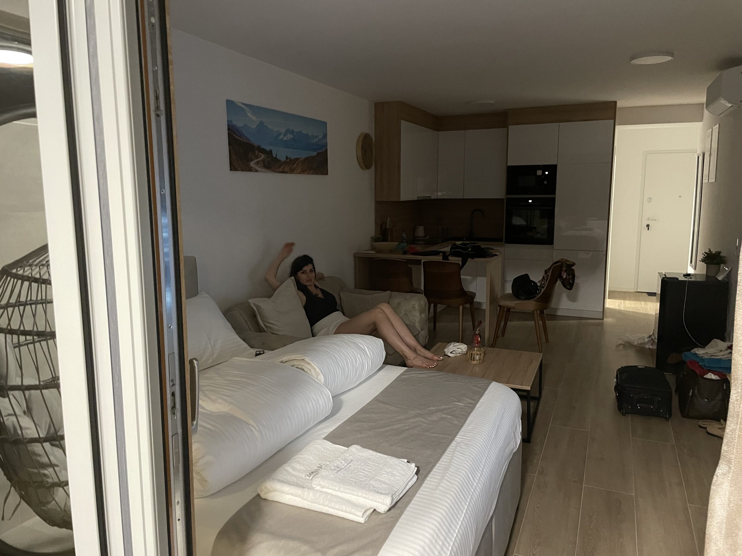 Jedva smo dočekali pobjeći od priča s asfalta, problema, svakodnevnice i željeli smo se osjećati kao da nismo kod kuće pa smo izabrali jedan predivan apartman iz kojeg nam se neće dati izlaziti. Apartman je novo uređen u kojemu prevladavaju profinjene svjetle boje i moderan dizajn. Ono što nam je svakako najveći gušt je terasa koja pruža predivan pogled na otvoreno more i idealna za uhvatiti još koju zraku sunca kad se popodne vratiš s plaže.