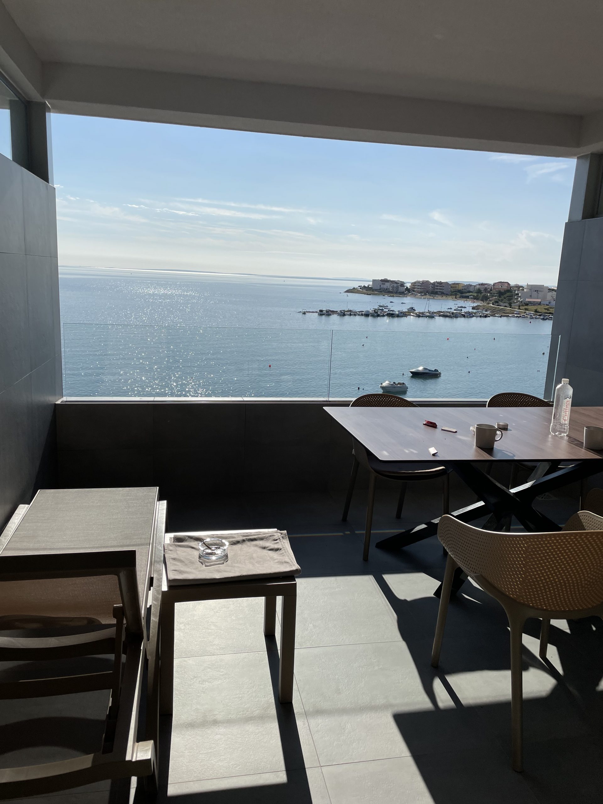 Sjedim na terasi, gledam u morski beskraj i ispijam finu fancy kavicu iz apartmana nakon što sam u lokalnom bircu popila pivo s grejpom.