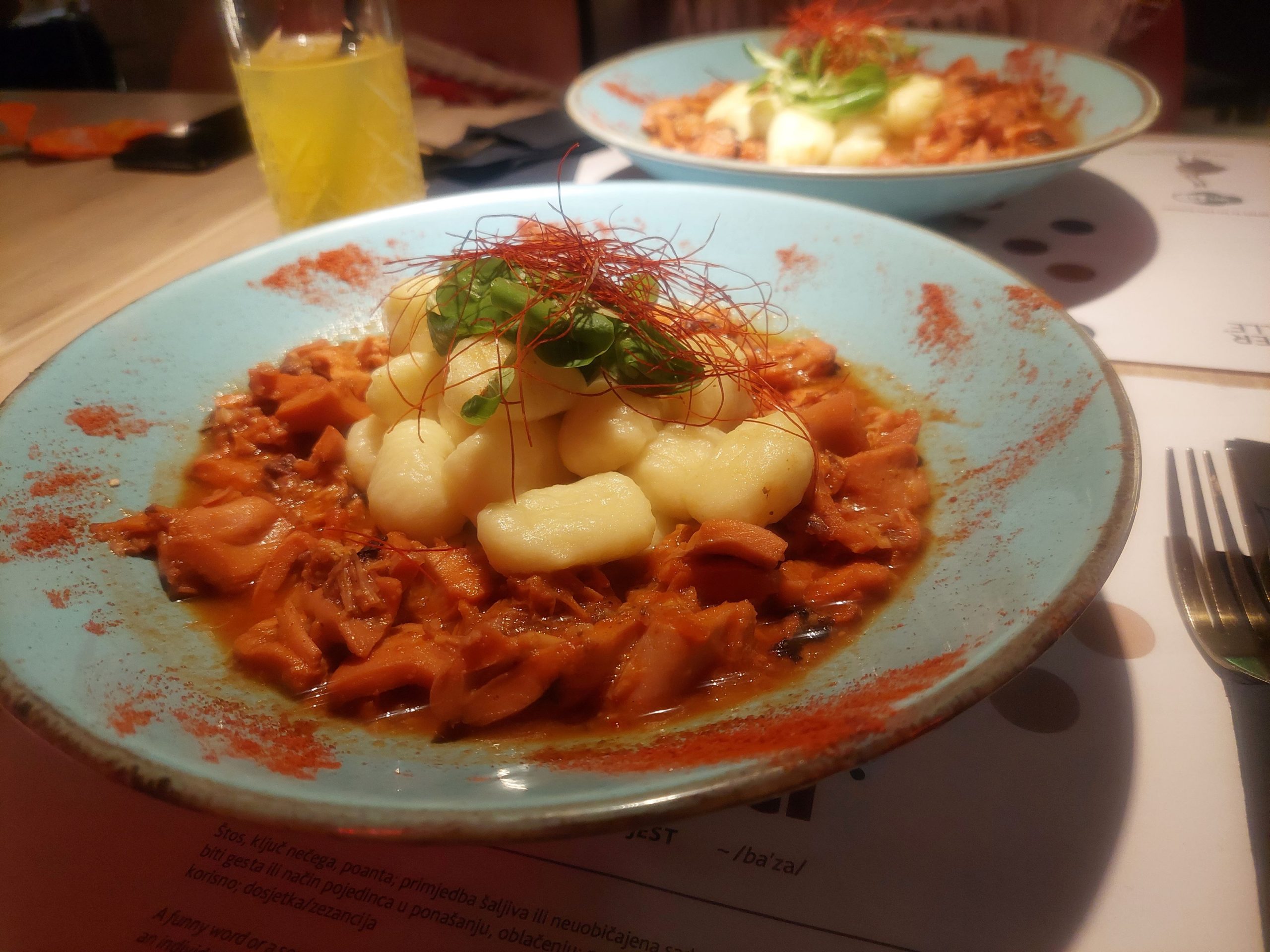 Da budem preciznija…Gulaš od hobotnice s njokima. Izgledom primamljiv ispunio je naša očekivanja. Iako se radi o morskim plodovima jelo je jako zasitno, odlično začinjeno i za mene nešto novo. Obično jedem salatu od hobotnice, ali na ovaj gulaš se definitivno opet vraćam.